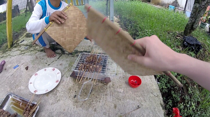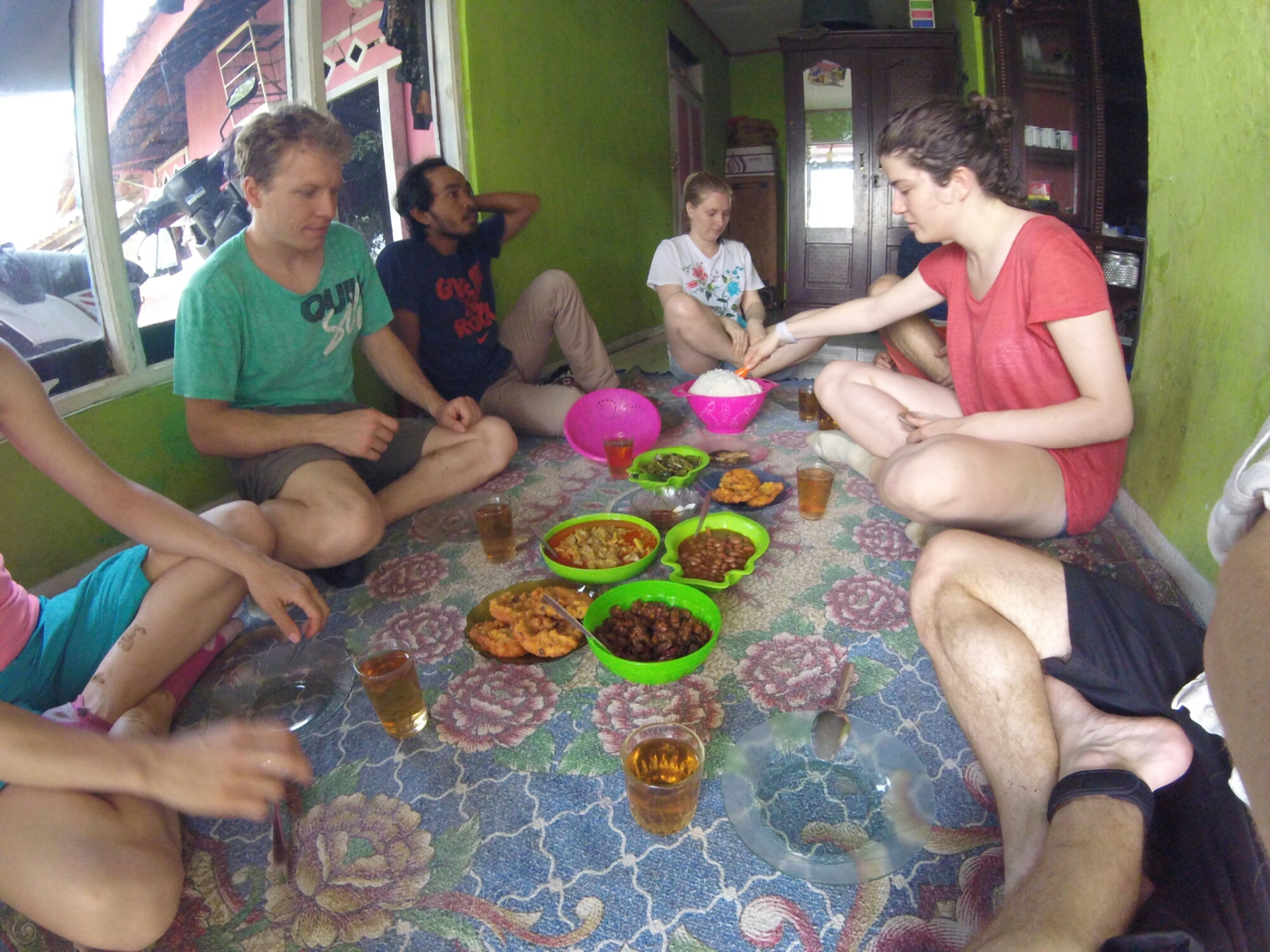 Après la baignade, il est temps d’aller manger ! Et pour ça, retour dans la maison du village que nous avions quitté auparavant. Nos hôtes nous ont préparé plusieurs mets délicieux et on ne peut plus authentiques. Se restaurant dans cette petite maisonnette dans les rizières indonésiennes n’est pas forcément rassurant pour nos petits intestins d’occidentaux, mais on a mangé et on va bien. 😉