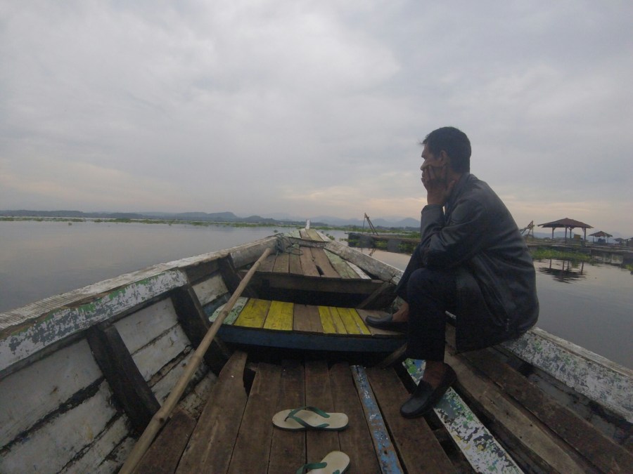 Nous sommes arrivés le Mercredi 10 mai en début d’après midi. Après avoir bu un bon thé glacé et mangé un bon repas, Yudhi nous a proposé d’aller visiter le village flottant sur un lac près de Cianjur. Contrairement à ce que dit le Lonely Planet, la première activité n’est pas gratuite ! Cette activité coûte 150 000 IDR (environ 10€) par personne. C’est Anthony qui a été notre guide. Après environ 1h de trajet entrecoupé de petites pauses pour nous parler de la culture du riz et nous laisser prendre quelques photos, nous sommes arrivés au village flottant. Il ne s’agit pas vraiment d’un village avec des habitations dans lesquelles les gens vivent tous les jours, mais plutôt des retraites dans lesquelles les gens se sont fait une deuxième petite maison et qu’ils utilisent pour pêcher. Nous sommes montés sur une des embarcations dont les villageois se servent pour rejoindre leurs habitations et avons fait un tour sur le lac. L’eau calme, l’air frais, et la vue des montagnes au loin rendent ce moment vraiment sympa.