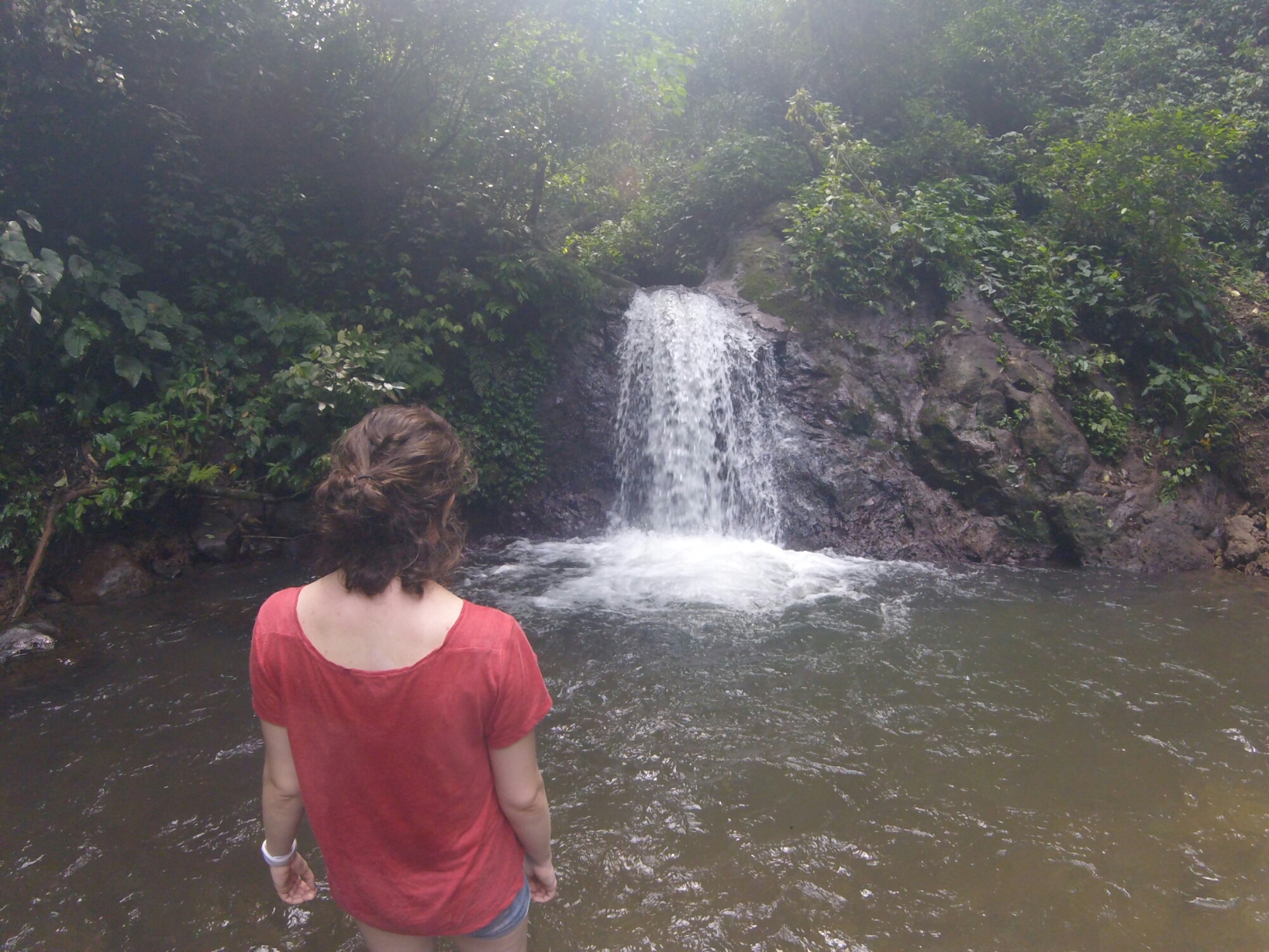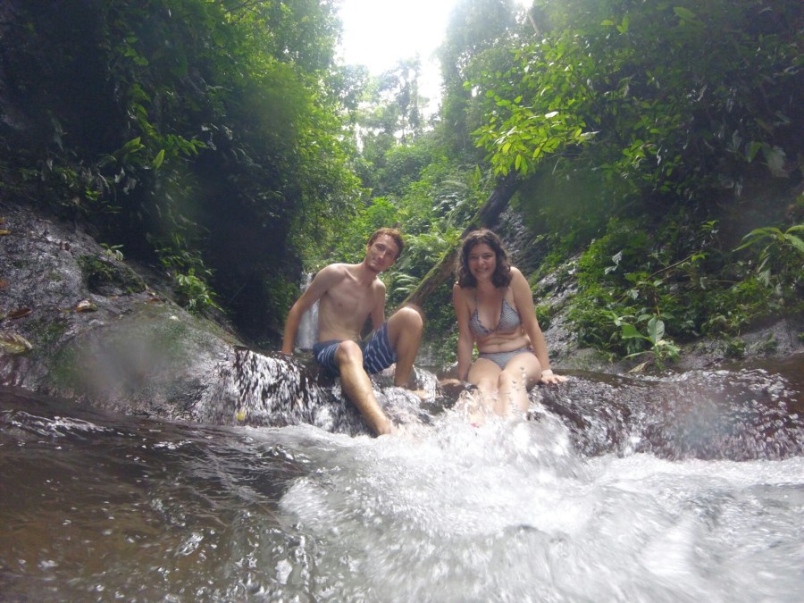 Nous nous sommes ensuite mis en route pour la cascade. Pour la trouver, il faut passer dans la jungle, prévoyez donc de l’anti moustiques. Le chemin peut être un peu glissant, un peu vertigineux par endroits, mais la vue qu’il offre en vaut largement la peine.