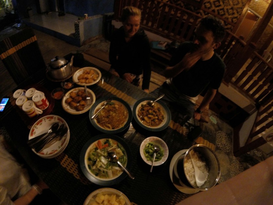 Tous les repas sont compris (petit déjeuner, déjeuner, dîner). Tout est vraiment succulent, varié, authentique et préparé sur place par la famille. Tout est bon, même pour nos estomacs fragiles. Il ne faut pas avoir peur de boire des boissons avec des glaçons. Par contre, il faut faire attention aux sauces parfois très « spicy ».